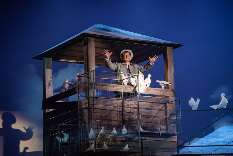 Эта история, хорошо знакомая нам по всенародно любимой киноленте, вдохновила известного композитора Андрея Семёнова на создание музыкального спектакля. Кстати, изначально автор сценария фильма «Любовь и голуби» Владимир Гуркин писал эту лиричную, трогательную и невероятно смешную историю любви, измены и прощения для театральных подмостков. И премьеры пьесы, как и позже показы кинофильма, имели оглушительный успех.