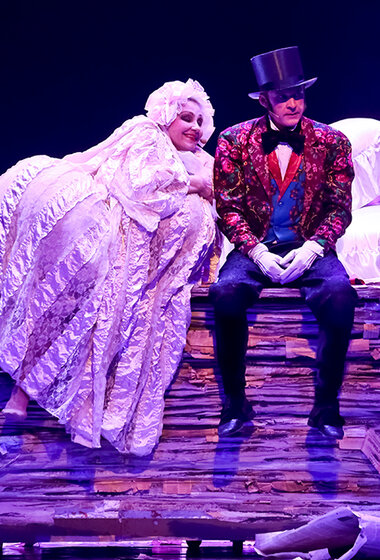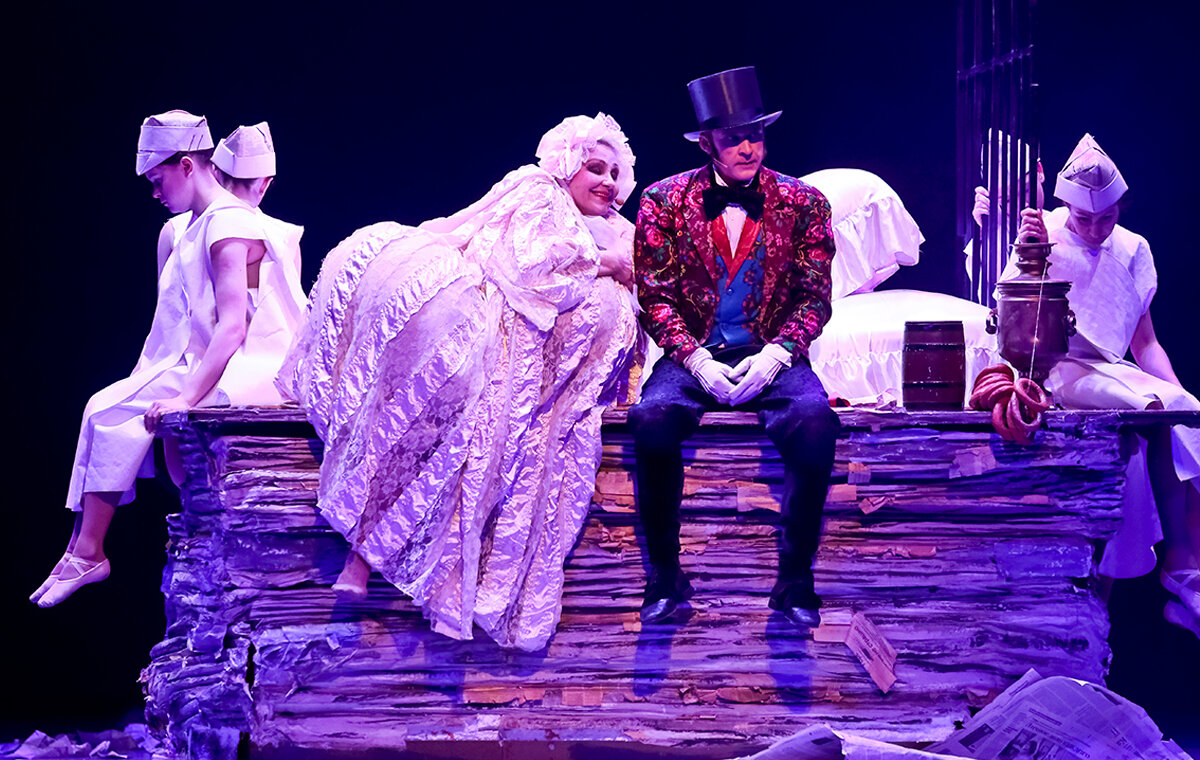 «Мертвые души» — одно из самых значимых произведений русской литературы. А в Омском музыкальном — это один из самых масштабных и красивых мюзиклов. Вниманию зрителя представлено более 200 потрясающих костюмов, над сценическим воплощением которых работала вся художественно-постановочная часть театра. В спектакле заняты 20 вокалистов, 35 артистов хора, балетная труппа и весь оркестр. По отзывам критиков, эта «блистательная постановка представила героев «Мертвых душ» по-гоголевски иронично и озорно и по-современному остроумно».