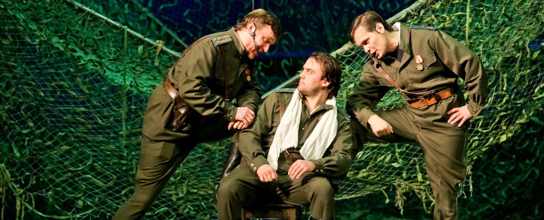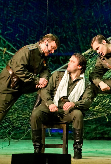 Спектакль разворачивается на фоне военных действий, однако, по словам режиссера, «спектакли только про войну никто не ставит». Под маскировочной сеткой, которая превращается то в палатку, то в ангар для самолета У-2, летчики и летчицы встречаются, влюбляются...