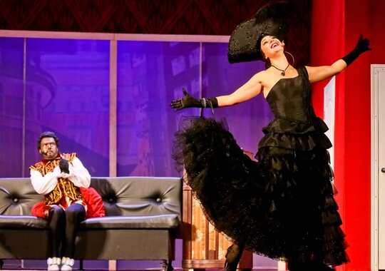 Клубок смешных и нелепых ситуаций распутывается на глазах изумленного зрительного зала, заставляя публику, затаив дыхание, следить за невероятными перипетиями сюжета. И все это — гимн оперному искусству... Которое, впрочем, остается за рамками спектакля. На сцене же звучат популярные зарубежные хиты 60–80-х годов прошлого века.