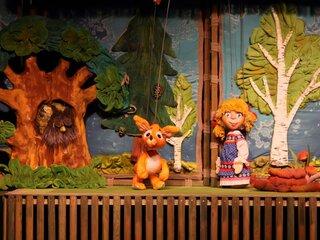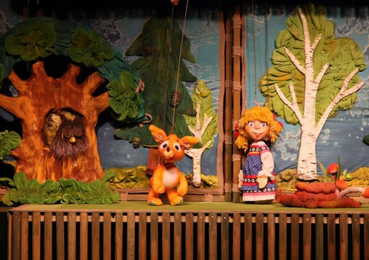 Известная сказка превратилась в веселый музыкальный спектакль. Машенька, заблудившись в сказочном лесу, встречает мудрого филина, веселого зайку, хитрую лису, которая посоветует обратиться за помощью к мишке. Доброму мишке скучно жить одному в лесу. Вот он и не отпускает девочку к дедушке и бабушке. Машенька придумывает остроумный способ, как вернуться домой. Какой? Вы все знаете. Испечет пирожки, положит их в корзину, сама спрячется.