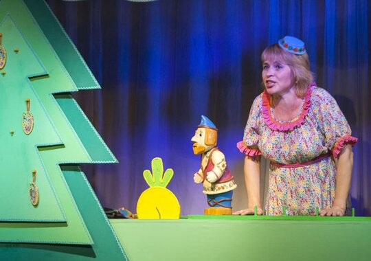 Сказочница-затейница расскажет и покажет малышам свою сказку о Дедушке хорошем, Бабушке доброй, внучке Нюре веселой, собаке Шарике храбром, кошке Мурке хитрой и просто Мышке умной. Но только с помощью маленьких зрителей у героев получится вытащить большую-пребольшую репку, выросшую в огороде у Дедушки. А обратиться за помощью к ребятам героям сказки подскажет просто Мышка умная.