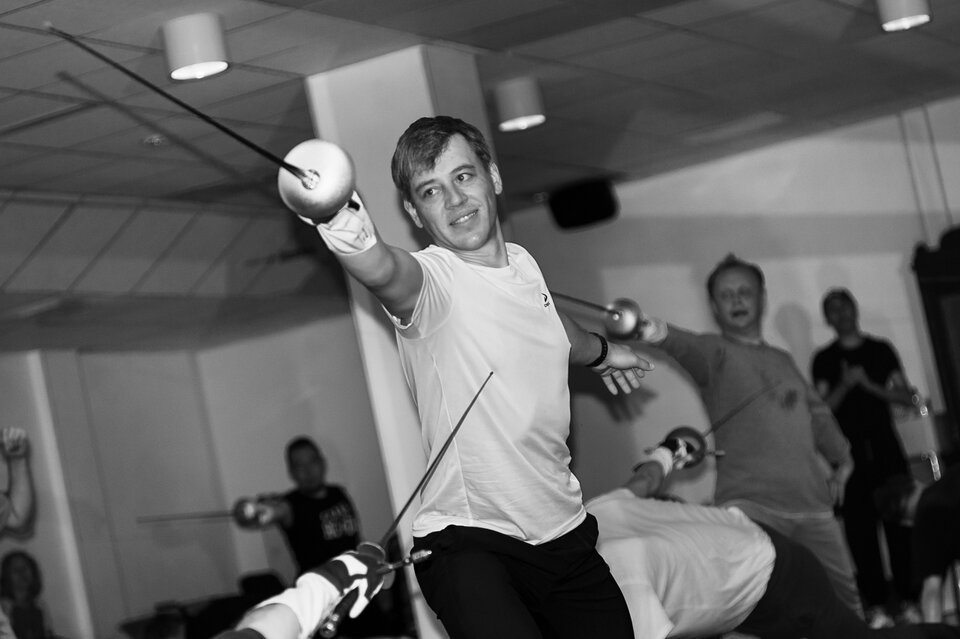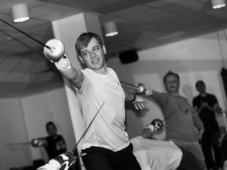 Остриё шпаг, скрещённых в танце смерти, чести и безрассудства.