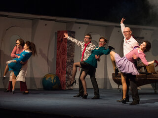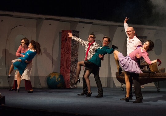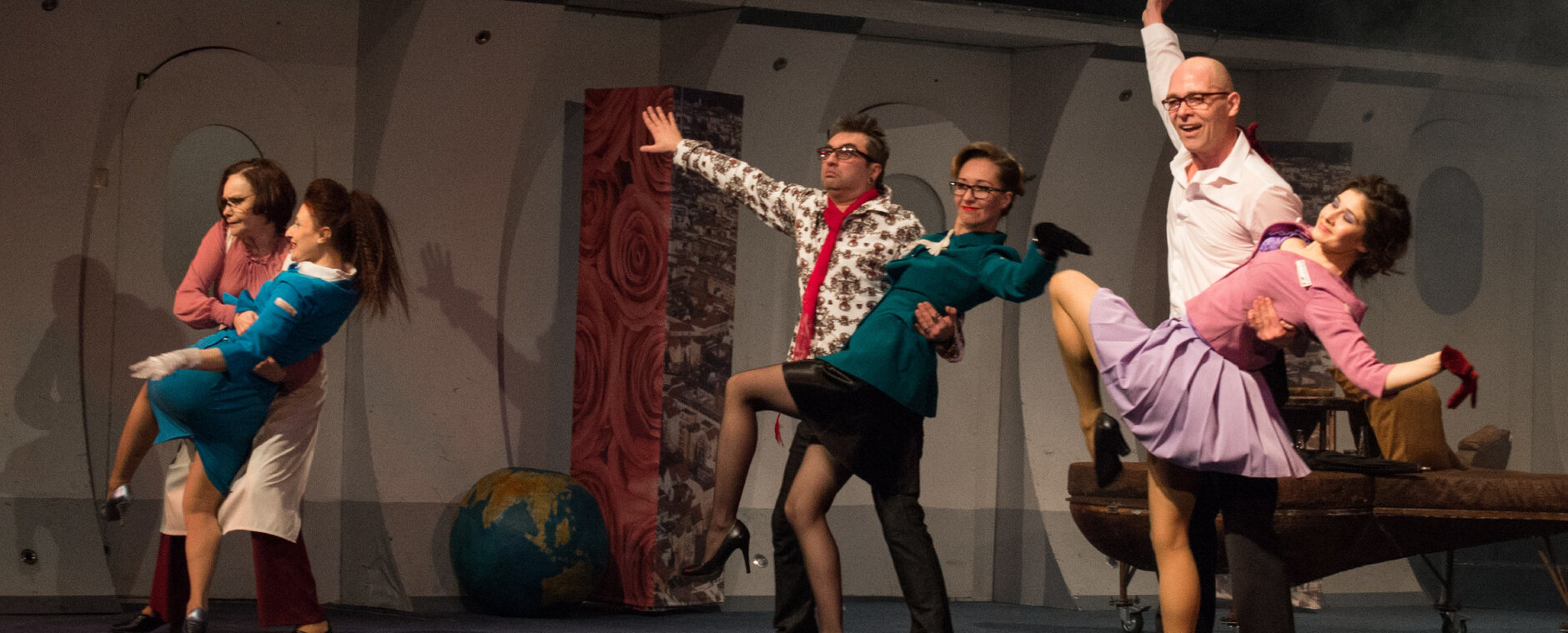 Весьма непринужденно, не без элегантности и с абсолютным чувством юмора спектакль рассказывает о романе молодого импозантного парижанина с тремя очаровательными стюардессами.
