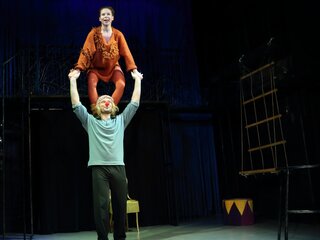 Зритель попадёт в святая святых: за кулисы к артистам. Да не простым, а цирковым! Перед глазами изумлённой публики развернётся сумасшедшая клоунада с головокружительными аттракционами и неожиданными превращениями; каждый сможет постичь тайны репетиционного процесса и настоящие муки творчества. Но за этим ярким праздником только очень внимательный сможет разглядеть трагическую судьбу артиста.