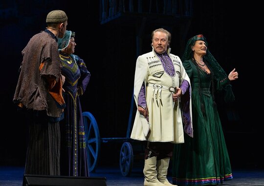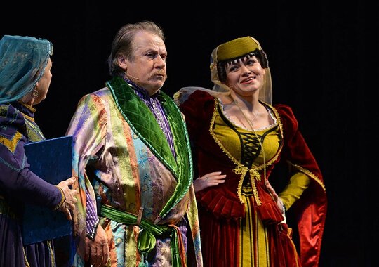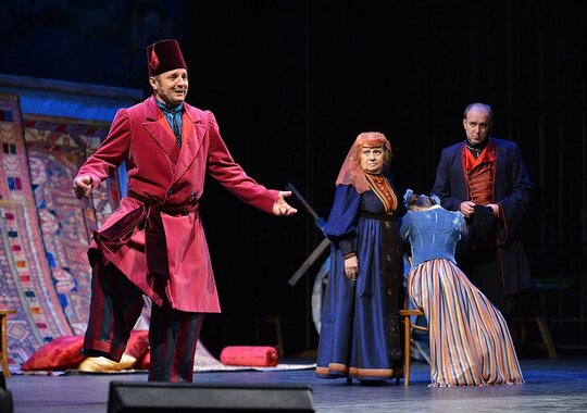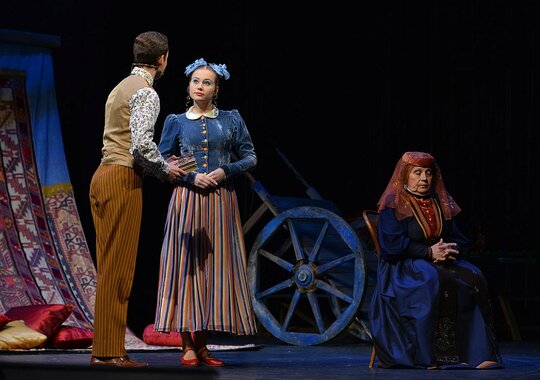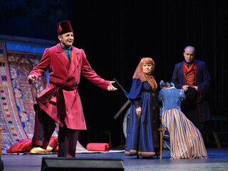 Для омской драмы «Ханума» — это первая за долгие годы попытка сделать музыкальный спектакль. В нём занята почти вся труппа. На сцене живой оркестр, песни, танцы — никакой фонограммы. И этот «легонький» спектакль, «легонькая» комедия далась мне как режиссеру необычайно тяжело. В таком материале мы все: и режиссёр, и актёры, и художник, и балетмейстер балансируем на границе вкуса. Чуть в сторону и...