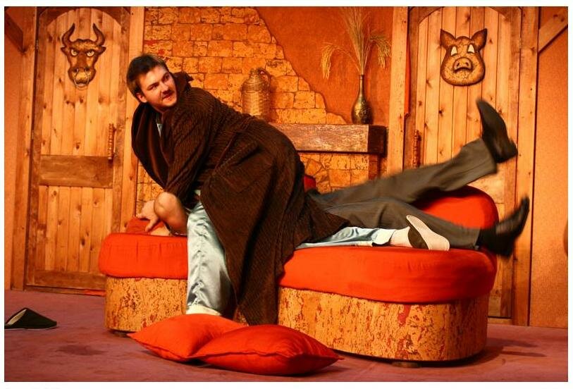Что делать мужу, который собирается провести незабываемый вечер с любовницей, а вместо этого встречает любовника своей жены? Что делать «любовнику жены», который случайно встречает любовницу своего друга? Эта путаница создает массу забавных ситуаций и основу самых неожиданных решений… для самих героев.Спектакль «Пижама на шестерых» − это режиссерский дебют артиста театра Драмы города Омска Владислава Пузырникова. Его комедия идет на сцене Лицейского с 2007 года, и по-прежнему собирает аншлаги по нескольку раз в месяц.