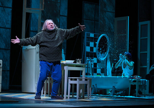 «Эта повесть для меня глубоко лиричная, добрая и совсем не жестокая, какою она кажется на первый взгляд. Она о любви. О том, почему мы, внуки, такие. Она о нас, о наших травмах. Я думаю, что этот материал должен стать интересен зрителю. Особенностью формы, пожалуй, станет особый взгляд на текст Павла Санаева из сегодня, из нашего времени века 21-ого. Меня интересуют инструменты и механизмы работы памяти, воспоминаний, матрица образов и картинок: как это происходит внутри нас. А работа с замечательными артистами, занятыми в спектакле, — возможность поиска и открытий». Роман Габриа, режиссер спектакля.