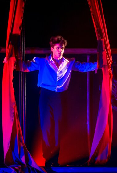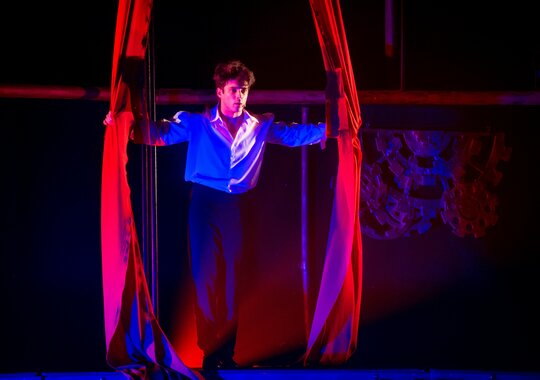 Уникальная постановка в жанре саунд-драмы, с элементами воздушной гимнастики, завораживающей музыкой и речитативными монологами, приковывает взгляды публики на протяжении всего спектакля.