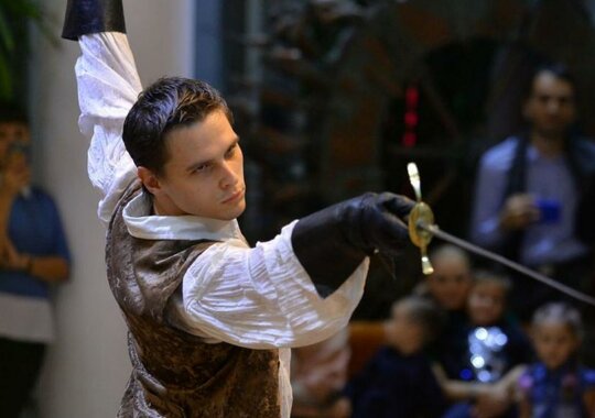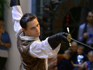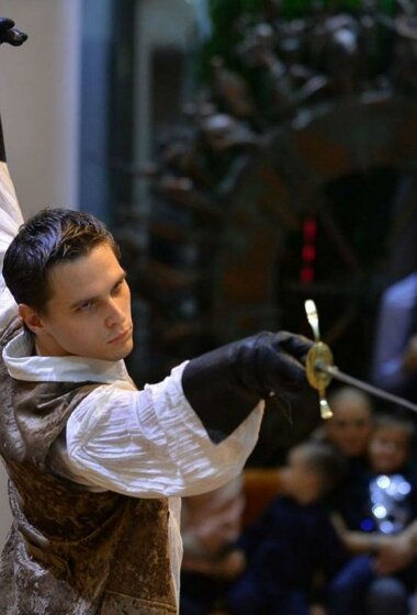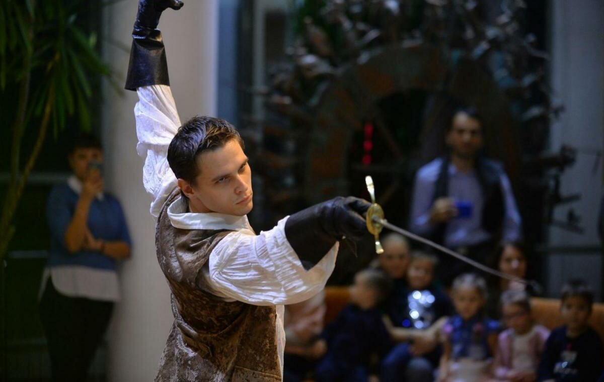Театральная фантазия по роману Александра Дюма. Классический сюжет, который интересен всем, вне зависимости от возраста. На спектакле старшее поколение погрузится в ностальгические воспоминание, а молодой же зритель познакомится с захватывающей, полной приключений историей. Здесь есть всё: и увлекательный полный неожиданных поворотов сюжет, и коварный враг, и подвиг во славу королевы, драки, шпаги, предательство, и, конечно, верная дружба и первая любовь. Театр не пересказывает известный роман и не иллюстрирует любимый фильм, он создаёт свою оригинальную историю. Итак, молодой человек на лошади жёлто-коричневой масти въехал в город Мент…
