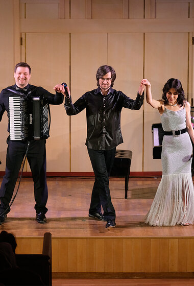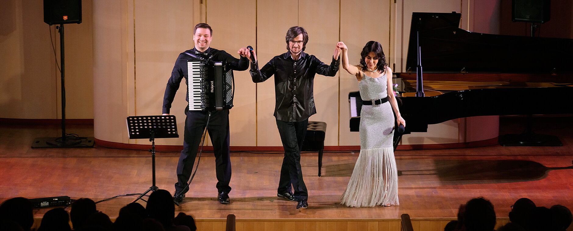 — Лауреат всероссийских и международных конкурсов, солист Оркестра русских народных инструментов им. В. А. Салина Александр Прокопчук (аккордеон).