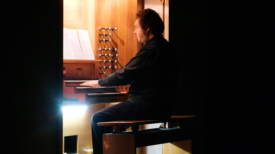 — Лауреат международных конкурсов Андрей Бардин (орган)
