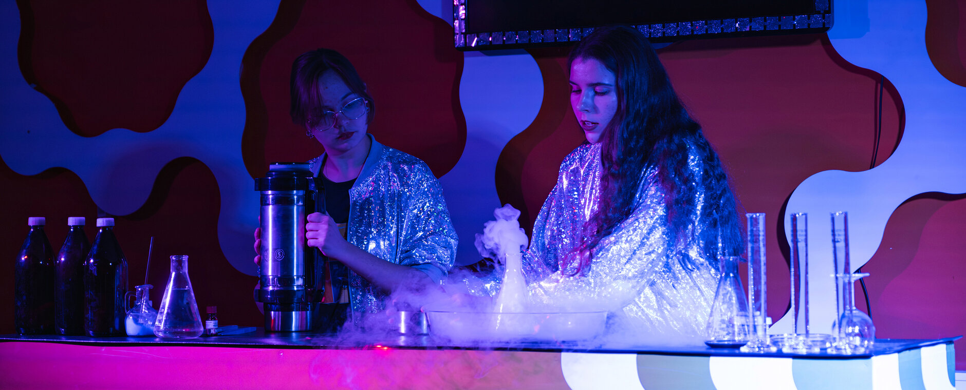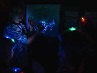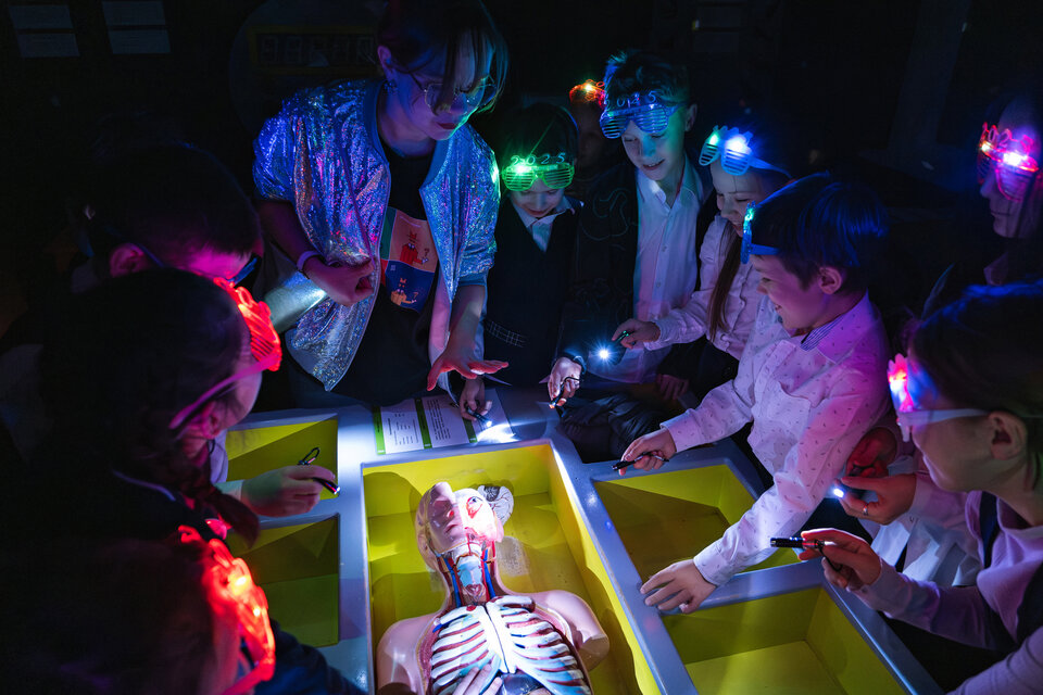 В программу входят эксперименты с интерактивными экспонатами, яркие опыты, командные задания и мастер-классы (прохождение «черных дыр» Бернулли, создание мостов и Фенакистископов).