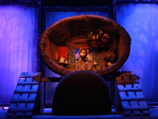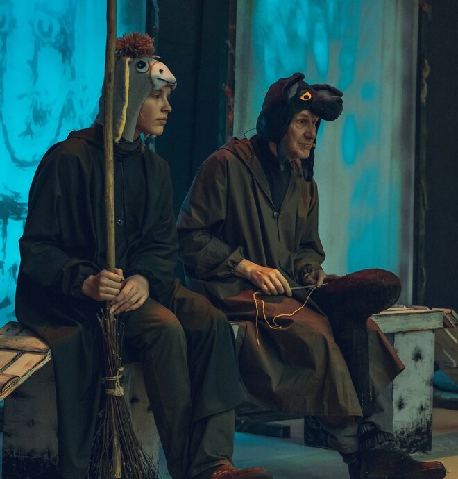 Есть в спектакле и море, и лес, и актёры живого плана, и куклы. Декорации создаются из причудливой игры цветного света и тени, невероятная музыка, одновременно простая и завораживающая, подхватывает, словно морские волны, и уносит в свои глубины.