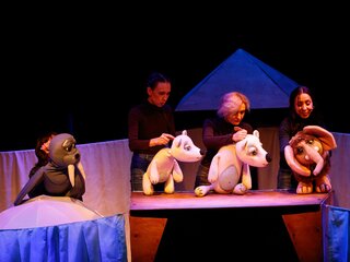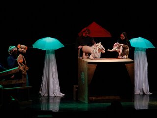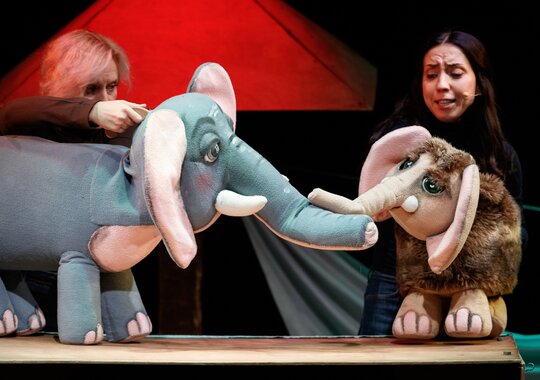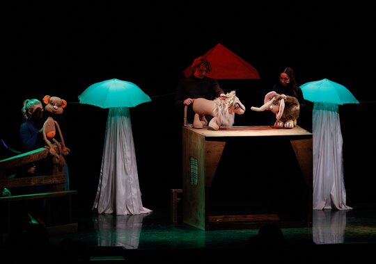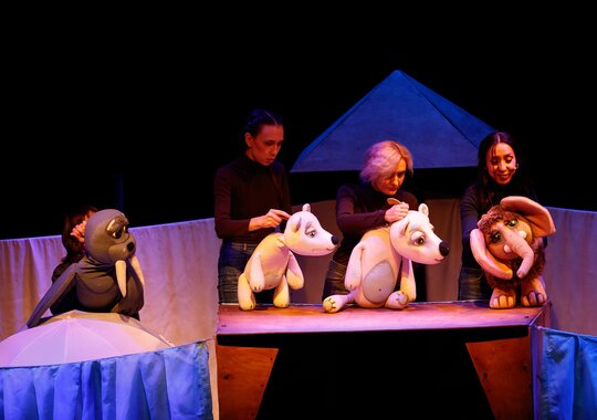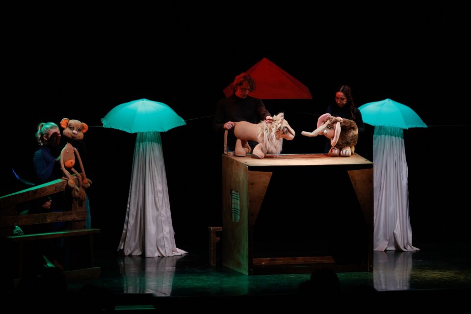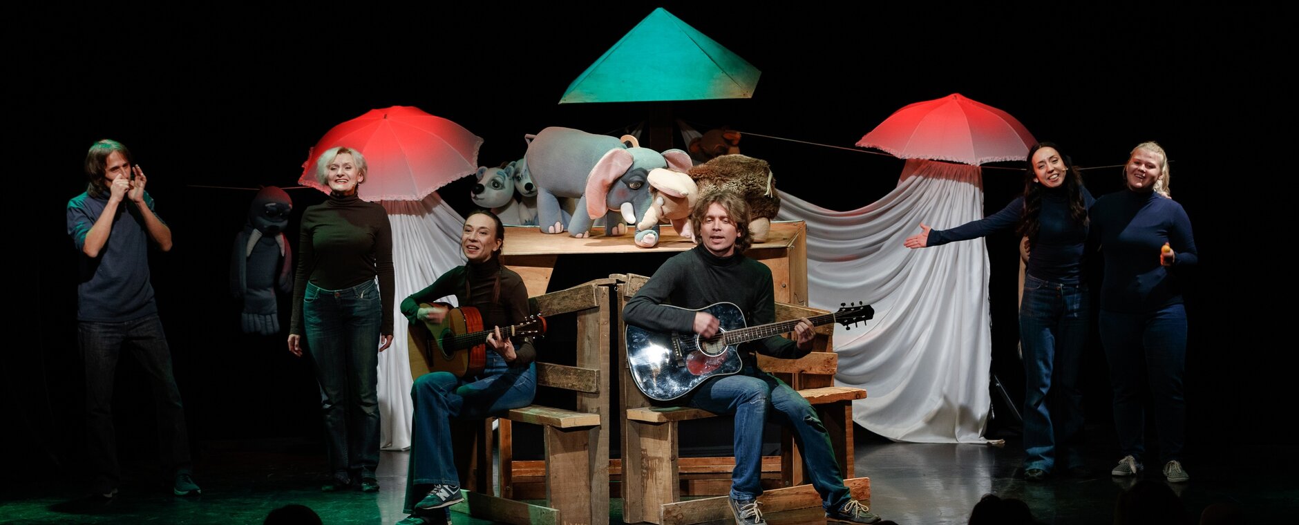 В спектакле работают большие мягкие планшетные куклы, похожие на добрые плюшевые игрушки из детства. Специально для спектакля написаны музыка и песни, исполняемые под аккомпанемент живой гитары.