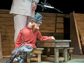 Персонажи «Муму» — крепостные люди — живут по указке, подчиняются навязанной сверху воле, почти утратив собственную, и становятся… марионетками. Спектакль «Муму» — особый случай в истории пермского театра: спектакля, который был бы целиком основан на системе кукол, приводимых в движение с помощью нитей, на этой сцене еще не было.