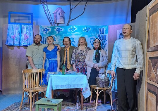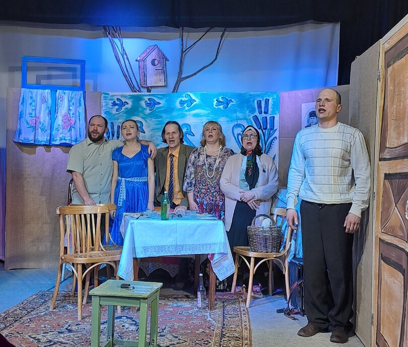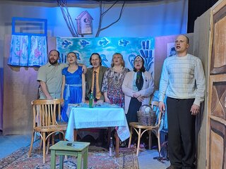 Это продолжение комедии «Семейный портрет с посторонним». В новом спектакле помимо известных персонажей — Катерины с Тимофеем, дочери Татьяны с мужем Михаилом, озорной бабки — действует еще и сват, лицо не последнее в родственных отношениях двух семей. Сват стал свидетелем «невероятного» события: на имя хозяев дома пришел перевод от племянника на сумму с нулями — страшно даже ее назвать. Понятно, что по такому «денежному» случаю вся деревня, как доложила бабка, «на ушах стоит». Деньги охраняли всю ночь и не уберегли от человека в маске...