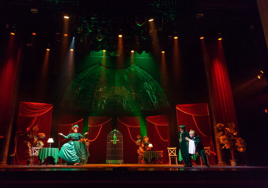 В основу спектакля Музыкального театра положена пьеса, хорошо всем знакомая по экранизациям этой оперетты (ее оригинальное название – «Принцесса цирка»). Роман принца арены и парижской красавицы, легкие, остроумные сцены комических героев, в том числе в знаменитом ресторане «Зеленый попугай», чувственная музыка классика оперетты находят созвучное нашему времени сценическое воплощение.