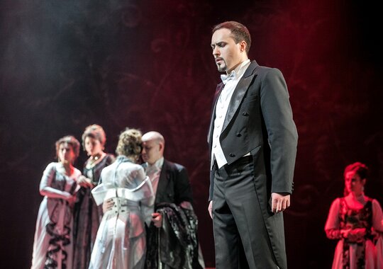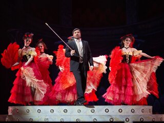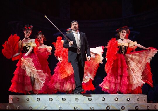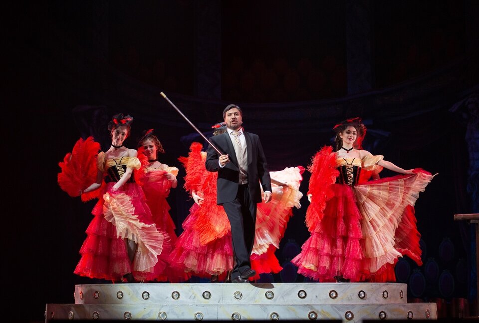 История преодоления пропасти между шансонеткой и аристократом проживается в спектакле на едином дыхании. Действие развивается стремительно, но зритель успевает порадоваться и красоте любимых мелодий, и страстности дуэтов, и очаровательной легкомысленности песенок и куплетов про красоток кабаре и частицу черта. Атмосферу создают и пыльная пальма у барной стойки, и пролеты девиц в неглиже, и неизменные разговоры у бильярдного стола, и суета мужчин-завсегдатаев. На сцене царят свободные нравы кабаре, но и здесь есть место искренним порывам и высоким чувствам.