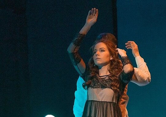 Беспрерывное движение метели, закручивающей всех в своем снежном вихре, заставляет прозреть героев спектакля.