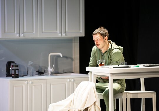«Сережа очень тупой» – вторая пьеса драматурга, считающегося сегодня одним из самых репертуарных авторов страны. Написанная в 2018 году, она сразу попала в афишу «Мастерской Петра Фоменко», московского театра «Практика», новосибирского театра «Старый дом», за три года ее поставили в двух десятках театров. Где-то курьеров приняли за вселенскую хтонь, где-то – за сотрудников службы безопасности, где-то – за волхвов; жанр спектакля варьируется от триллера до российского бидермайера.
