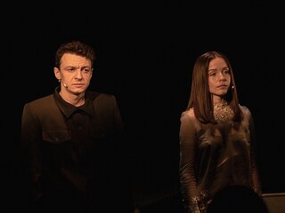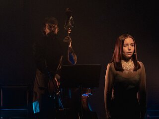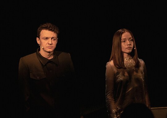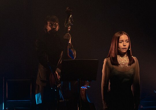 «Случайный вальс» — спектакль-концерт, лаконичный, можно сказать — аскетичный по художественным средствам, но слушать его недостаточно. Яркие визуальные образы, драматичная световая партитура и даже дождь — полноправные участники этого необычного спектакля.