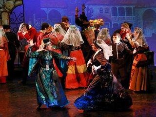 Зрителей ждет настоящий театральный бестселлер. И это неудивительно: сочный восточный колорит, вечно актуальная тема сватовства, безупречное чувство юмора и музыка великого мастера — рецепт беспроигрышный.