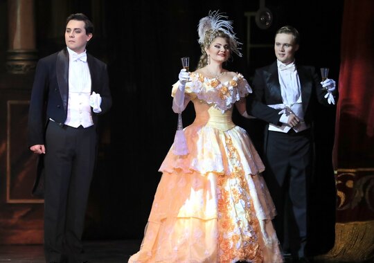 «Травиата» — это краткий миг из жизни женщины, чувственной, одновременно хрупкой и сильной, способной вырваться из фальшивого блеска окружающего ее мира и красотой духовного поступка преобразить себя и других. В постановке Музыкального театра опера «Травиата» — это спектакль, в котором нет эксцентричных авторских прочтений, а есть глубочайшее режиссерское уважение к музыке Джузеппе Верди, великолепное художественное решение, и конечно, блистательные артисты, готовые рассказать трогательную историю любви Виолетты Валери.
