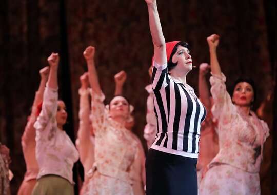 Музыкальная комедия «Бабий бунт» — спектакль-долгожитель, талисман Ростовского государственного музыкального театра. 2 мая 1975 года он впервые был показан на сцене нашего предшественника — Ростовского театра музыкальной комедии и сразу стал его «визитной карточкой». В основу пьесы Кирилла Васильева и Михаила Пляцковского легли «Донские рассказы» Михаила Шолохова, музыку написал композитор Евгений Птичкин. Известно строгое и взыскательное отношение Шолохова к экранизациям и инсценировкам его произведений, однако спектакль ему понравился. По просьбе писателя «Бабий бунт» показали в станице Вешенской, где он был принят с восторгом.