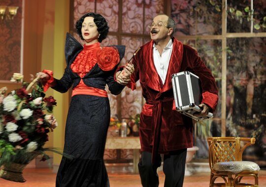 Здесь и начинаются комические недоразумения, которые сталкиваются, множатся, не прекращаясь до самого финала, заряжая зрителей озорным юмором. Блистательная игра, прекрасные костюмы, французский шик!