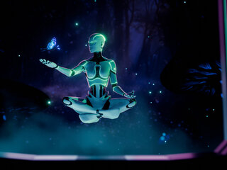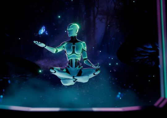 «Гуманоид» — ощути движение. Зал с антропоморфным роботом, который реагирует на гостей, управляет пространством, запускает волны света и звука.