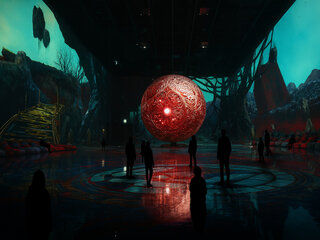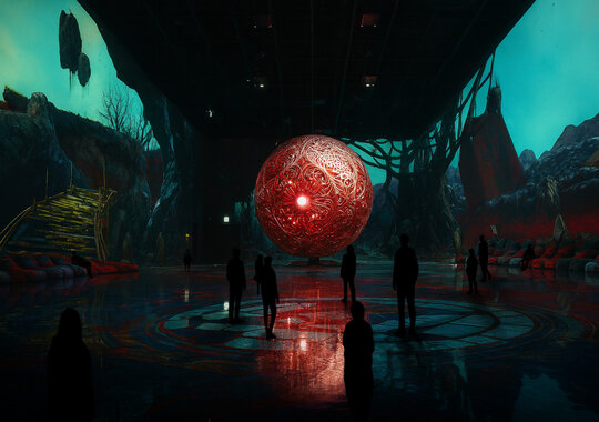 «Сфера» — любопытство внутри. Пространство с трёхметровым арт-объектом в форме инновационного сферического экрана с обзором на 360 градусов: следуя за ним, не просто наблюдаешь, а оказываешься внутри раскрывающегося мира.