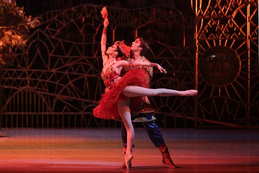 «Шопениана» — балет на музыку Фредерика Шопена. Фокинская «Шопениана» — это оммаж эпохе романтизма с её «белым балетом», летящими арабесками, воздушными танцами бесплотных сильфид и вечной тоской по идеалу. Вдохновлённый старинными гравюрами — изображениями легендарной Марии Тальони и её современниц и уставший от моды на виртуозность и демонстрацию балетной техники, Фокин в начале ХХ века сочинил бессюжетную зарисовку «в стиле того давно забытого времени, когда в балетном искусстве господствовала поэзия, когда танцовщица поднималась на пуанты не для того, чтобы продемонстрировать стальной носок, а для того, чтобы, едва касаясь земли, создать своим танцем впечатление лёгкости, чего-то неземного, фантастического». Продолжительность спектакля: 35 минут. «Шехерезада» — балет на музыку Николая Римского-Корсакова. В 1910 году «Шехеразада» произвела фурор в Париже. Едва откричав «браво» на премьере «Русских сезонов», модницы поспешили облачиться в a la восточные шальвары и чалмы, подобные придуманным для спектакля художником Бакстом, изготовители тканей запустили в производство полотна с орнаментами в голубых с оранжевым тонах, ювелиры с небывалым успехом стали продавать броские украшения, напоминавшие те, в которых блистали артисты на сцене. На сенсацию и рассчитывал Сергей Дягилев, задумывая к показу в Париже балет на сюжет из «1001 ночи» со сказочной музыкой Римского-Корсакова и экзотикой восточного колорита. В хореографии Фокина, все действия и чувства выразившего позами и движением, публику приводили в экстаз Ида Рубинштейн — своей царственной красотой, и взлетавший над сценой Вацлав Нижинский — звериной пластикой полуобнажённого тела. Таких чувственных оргий, как в «Шехеразаде», парижане в балете ещё не видели. И хотя сегодняшних театралов сценами сладострастных объятий и жестокой резни в гареме вряд ли удивишь, сочные музыкальные, живописные и пластические краски «Шехеразады» до сих пор будоражат воображение чуткого зрителя. Скучающего султана Шахриара развлекают одалиски и его любимая жена Зобеида. По совету младшего брата Шахземана, убеждённого в женской неверности, Шахриар уезжает на охоту. В гареме начинается оргия. Обитательницы гарема упрашивают главного евнуха впустить их любовников. В разгар оргии внезапно возвращается Шахриар. Он велит казнить своих наложниц, евнухов и рабов. Зобеида молит оставить ей жизнь, но, не получив согласия Шахриара, убивает себя. Продолжительность спектакля: 45 минут. «Жар-птица» — балет Игоря Стравинского. С этого балета началась карьера Игоря Стравинского. Первый заказ на сочинение, дебют на театральной сцене и сразу шумное внимание к дебютанту. Никому не известный начинающий композитор после парижской премьеры «Жар-птицы» встал в один ряд с главными ньюсмейкерами передового европейского искусства. Счастливый билет — предложение написать балет для «Русских сезонов» — Стравинский получил от Дягилева, не дождавшегося к назначенному сроку партитуры от проверенного в русской сказочной теме композитора Лядова. А веру в начинающего Стравинского чуткому на таланты импресарио вселило знакомство с его Фантастическим скерцо для симфонического оркестра, музыка которого «горела, пылала, бросала искрами», как вспоминал хореограф Фокин, задумавший «огневой образ» Жар-птицы. С