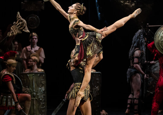 Императорский Рим с его пышными шествиями, оргиями и гладиаторскими боями становится эффектным фоном для драматической истории о борьбе за человеческое достоинство и свободу. Восстание гладиаторов обречено, но это не снижает напряжение в зрительном зале, поскольку в каждом эпизоде спектакля герои, столкнувшиеся в жестоком противоборстве, с максимальной полнотой проявляют все качества человеческой натуры.