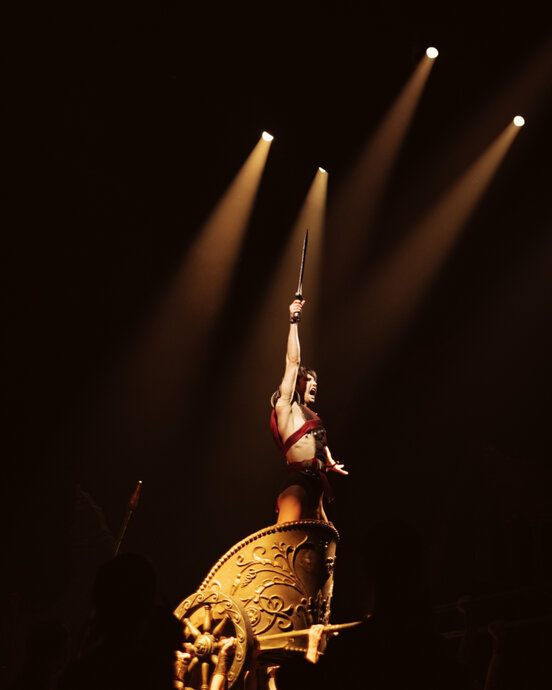 Императорский Рим с его пышными шествиями, оргиями и гладиаторскими боями становится эффектным фоном для драматической истории о борьбе за человеческое достоинство и свободу. Восстание гладиаторов обречено, но это не снижает напряжение в зрительном зале, поскольку в каждом эпизоде спектакля герои, столкнувшиеся в жестоком противоборстве, с максимальной полнотой проявляют все качества человеческой натуры.
