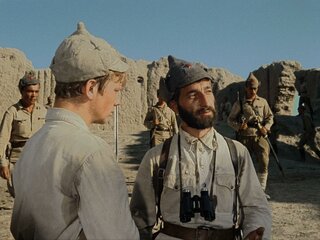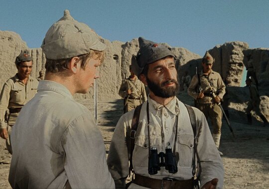 Бесконечная пустыня. Боец Сухов, прикуривающий от динамитной шашки, нескладный Петруха с вечно заклинивающей трехлинейкой, обаятельный Верещагин с надоевшей черной икрой и знаменитыми песнями-балладами, ловкий Саид , злодей Абдулла со своей бандой, любознательная Гульчатай, играющая с черепахой.