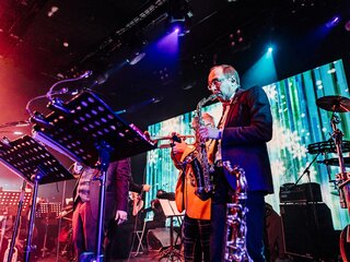 Солисты джаз-бэнда: Вова Чё Морале (Sweet Hot Jazz Band), Иван Васильев (Olympic Brass), Константин Маминов (Оркестр «Саксофоны Петербурга» п/у Г. Л. Гольштейна).