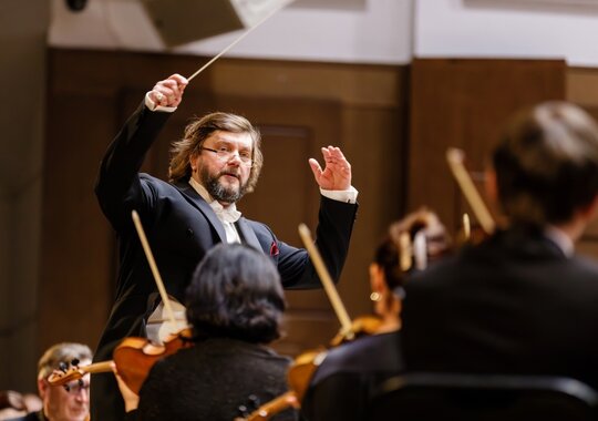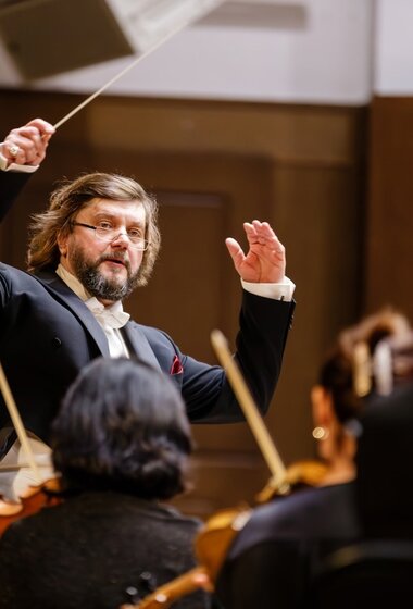 — Заслуженный коллектив России академический симфонический оркестр филармонии. Феликс Коробов — дирижёр;