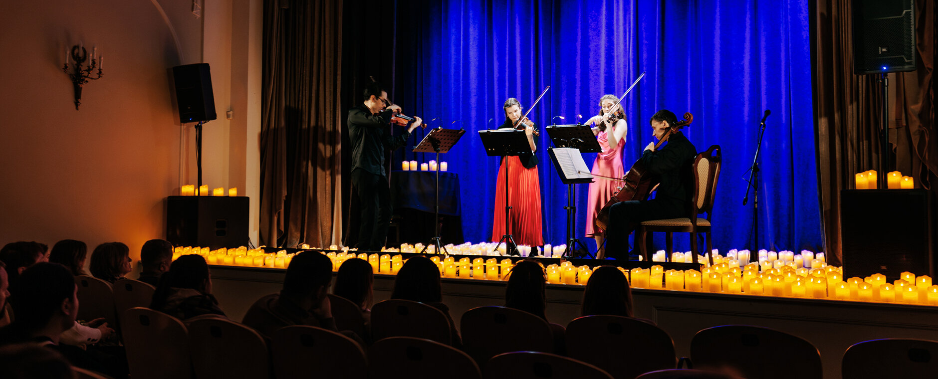 Исполнители на концерте 20 декабря — струнный квартет Aurum — лауреаты международных и всероссийских конкурсов. Выступают на известных площадках Санкт-Петербурга: Особняк Половцова (Дом Архитектора), Дворец Великого князя Владимира Александровича (Дом учёных), Особняк Румянцева, Музей-усадьба Державина, Особняк Матильды Кшесинской и других. В репертуаре квартета Aurum — шедевры мирового искусства различных эпох от барокко до музыки XX–XXI веков.