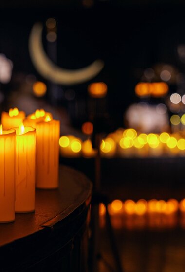 Представьте: вы в уютном полумраке окружены мерцанием сотен свечей, а над вами раскрывается грандиозный 25-метровый звёздный купол. Северное сияние зальёт зал фантастическими красками, звёзды будут падать и взлетать, планеты и галактики пронесутся в безмолвном космическом танце.