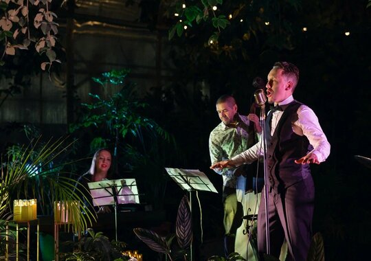 Среди тропических растений и в сиянии множества свечей вы услышите настоящие жемчужины джазовой музыки в исполнении высококлассного джаз-бэнда Jazz Hooligans. А «джаз на луне» окажется не просто метафорой, а изюминкой вечера.