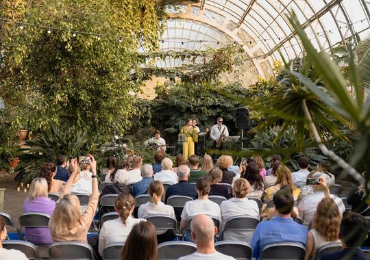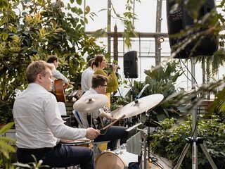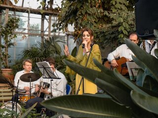Благодаря Jazz Retro Band «Близкие люди» вы почувствуете истинное французское очарование и «услышите» Париж. В окружении сотен свечей и тропических растений мы окунёмся в атмосферу душевного джаза и французского шансона. Для вас прозвучат самые популярные песни из репертуара Мирей Матьё, Эдит Пиаф, Zaz и других французских исполнителей.