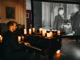 Во время кинопоказа вы сможете насладиться мерцанием свечей, создающих особую атмосферу уюта и тепла.