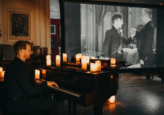 Один из самых известных фильмов Чарли Чаплина, классическая немая романтическая комедия о приключениях бродяги, который влюбляется в слепую девушку. Фильм будет демонстрироваться с музыкальным сопровождением талантливого пианиста.