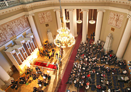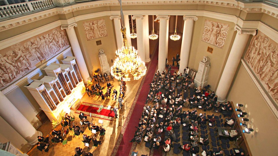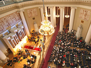 Экскурсия по основным парадным залам Таврического дворца входит в стоимость билетов первых трёх рядов, начало экскурсии за час до начала концерта.