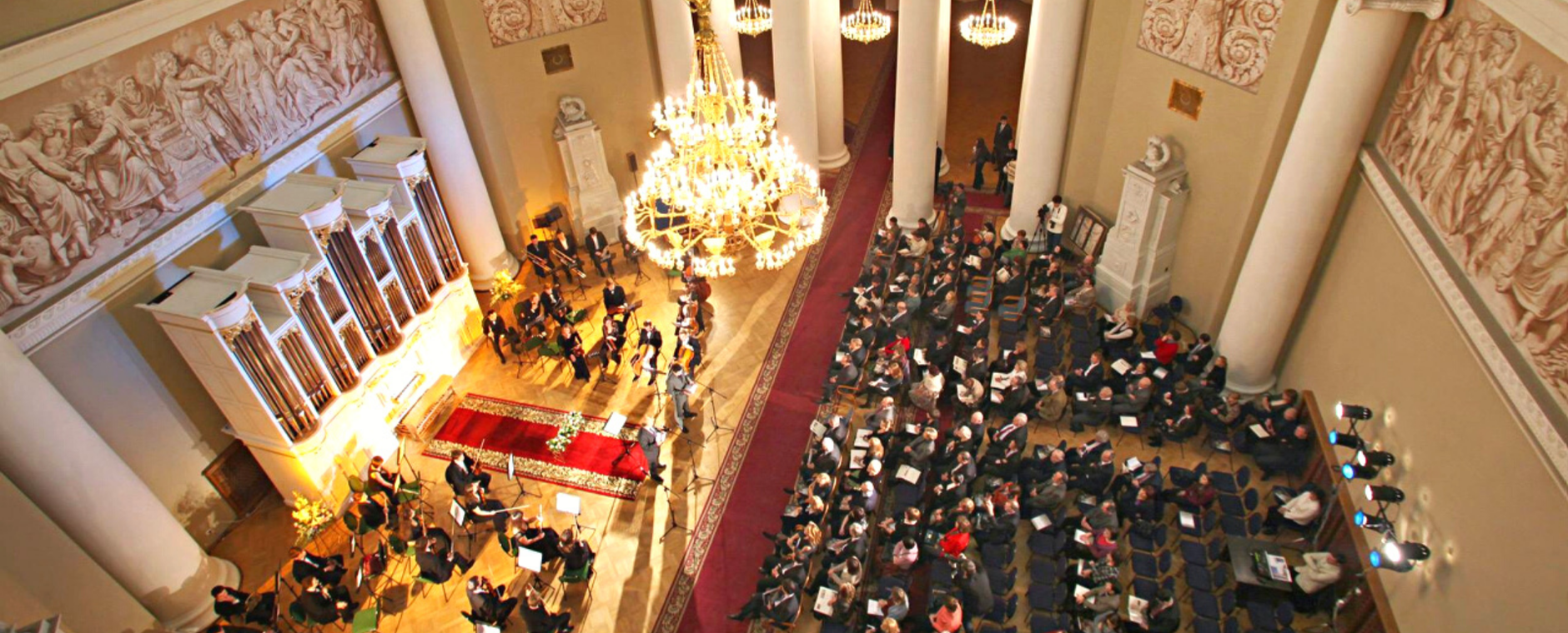 Волшебным вечером приглашаем петербуржцев и гостей города в Таврический дворец, где изысканная скромность и простота фасадов контрастирует с исключительной роскошью и великолепием внутреннего убранства. В этот вечер для вас прозвучат известные шедевры классической музыки, в исполнении грандиозного органа и виртуозных музыкантов.