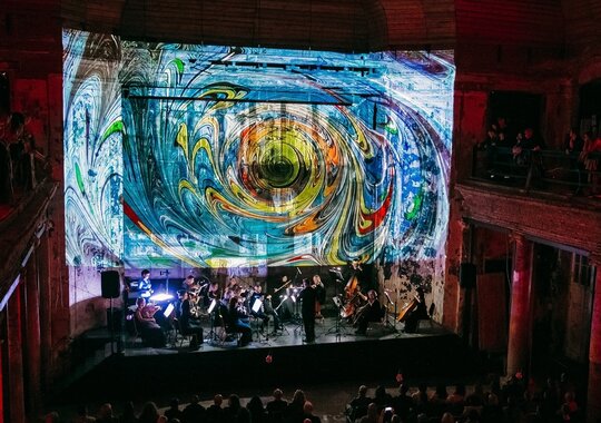 Шедевры танго в исполнении оркестра Olympic Orchestra прозвучат в темноте загадочной Анненкирхе, где над сценой на огромном фоне выжженных огнём стен будут спроецированы живые и красочные картины в технике Эбру.