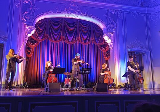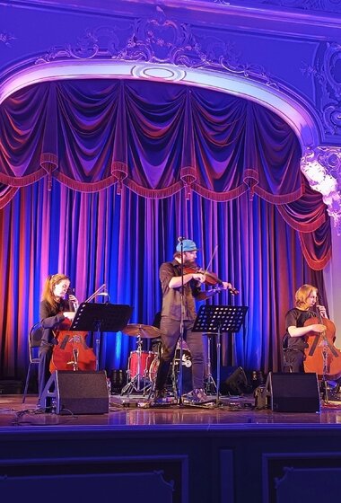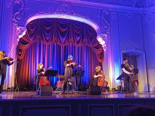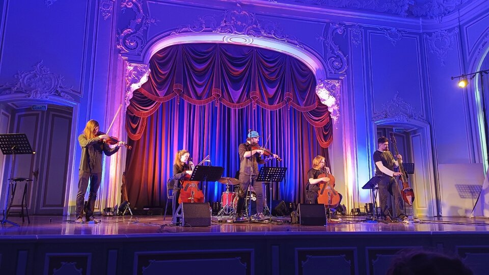 Задорный безбашенный панк и драйвовый мощный рок в исполнении струнных — всё, что вы хотели услышать на концерте рок-музыки — на сцене Дворца Белосельских-Белозерских.