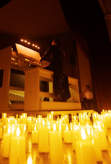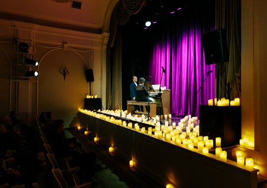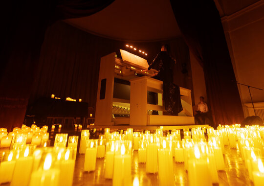 В этот вечер Дом Журналиста словно медленно распахивает свои двери, впуская свет свечей и мягкую дрожь рождественской музыки. Орган вступает первым, низко и уверенно, будто старинный дом вспоминает собственные тайные зимы. И вдруг на эту глубину ложится человеческий голос, тёплый, плотный, словно шаги в снегу, которые слышишь прежде, чем увидишь.