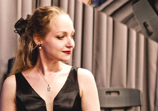 На сцене Екатерина Андрианова (Шайназарова) — пианист, концертмейстер, преподаватель.
